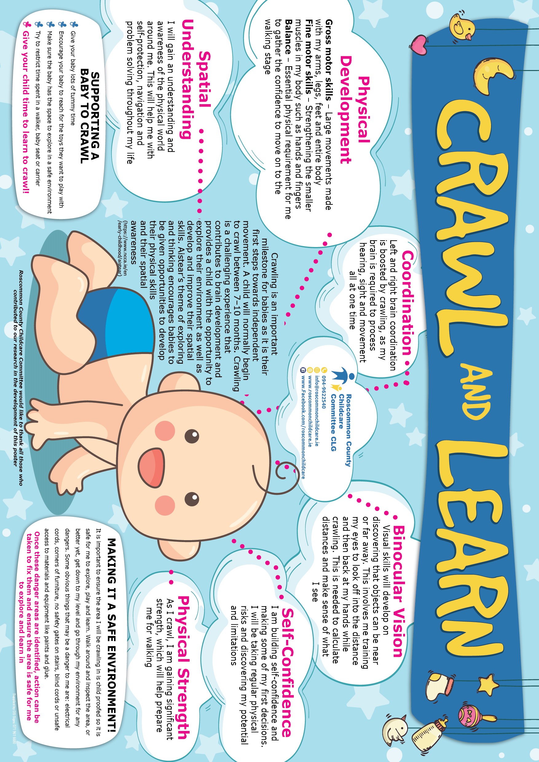 A poster for parents - Crawl and Learn - created by Roscommon County Childcare Committee