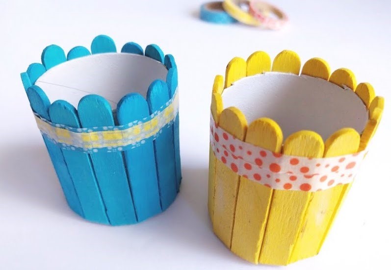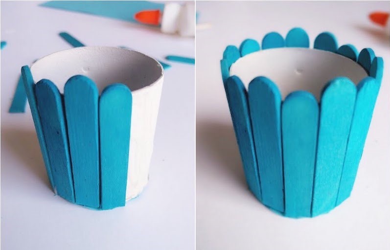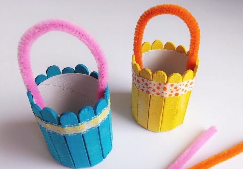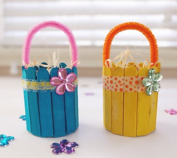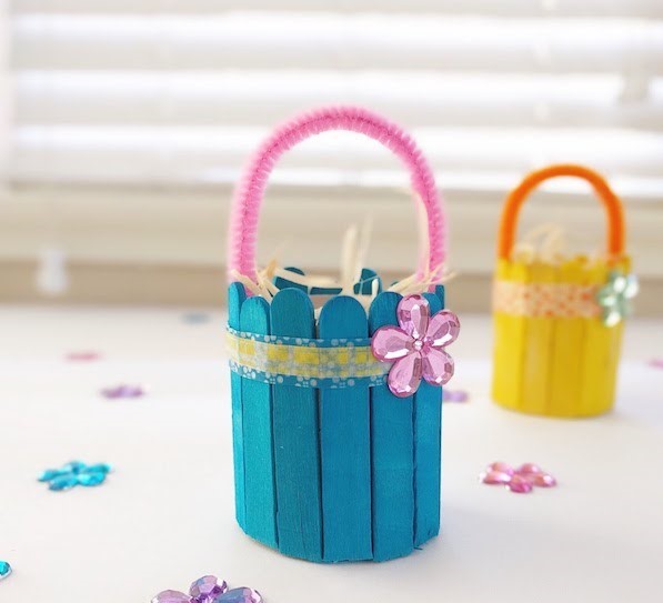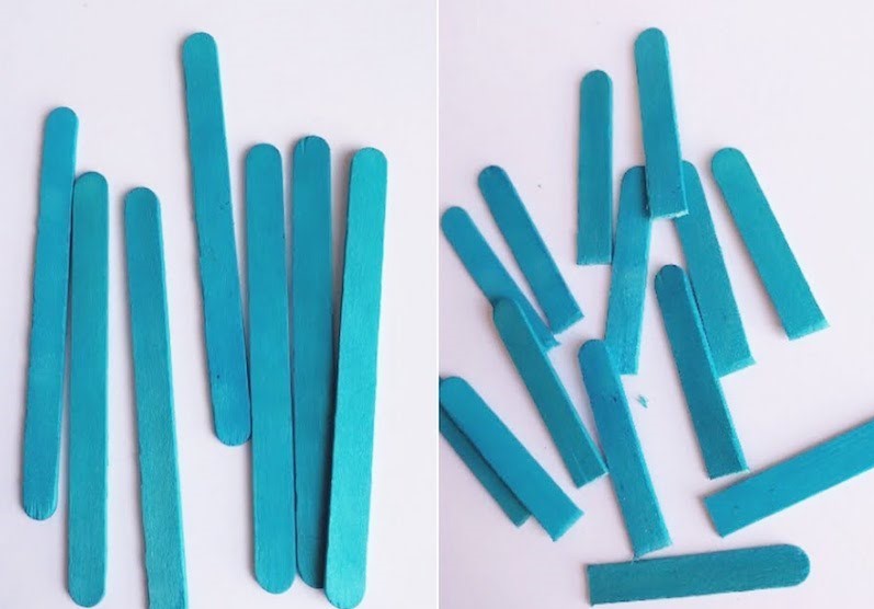 3. Cut wooden craft sticks into the half. We have used coloured sticks for our basket. You can paint the sticks if you don't have the coloured one.