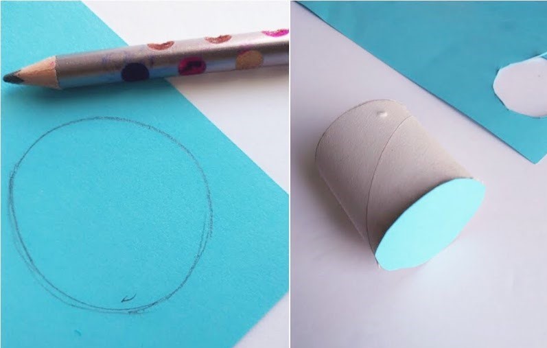 2. Trace and cut out a circle from the card and glue it to one end of the tube making the base of the basket.