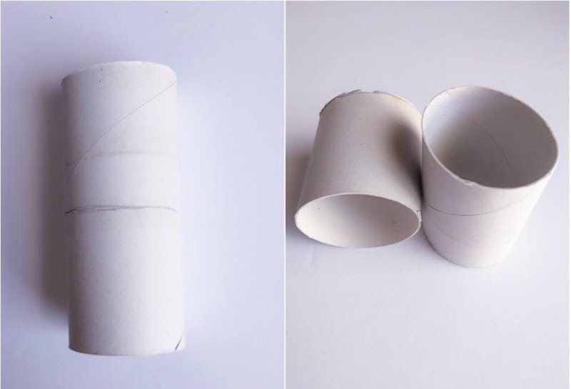 1. Cut an empty cardboard tube in half