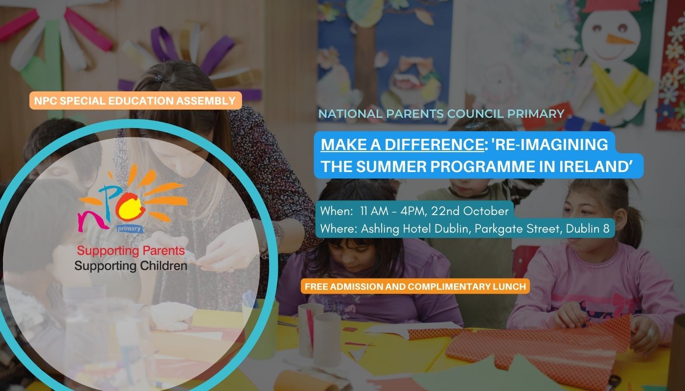 NPC believes that the time is right to have a discussion with parents about the type of Summer Programme they would like for their children in the future. To start this conversation, we are hosting this consultation event: ‘Make a Difference : Re-imagining the Summer Programme in Ireland’, an NPC Special Education Assembly on the 22nd of October to hear what you as parents have to say.