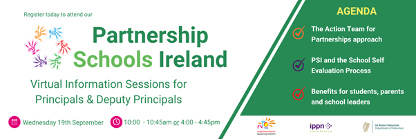 National Parents Council Primary invites Principals and Deputy Principals to attend an online information session on Partnership Schools Ireland (PSI).