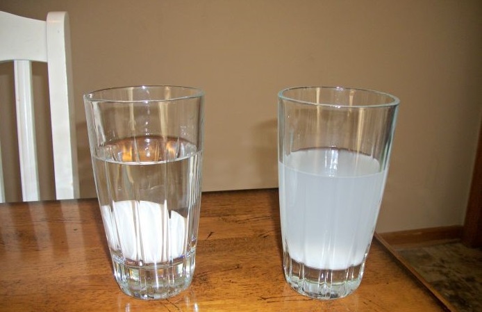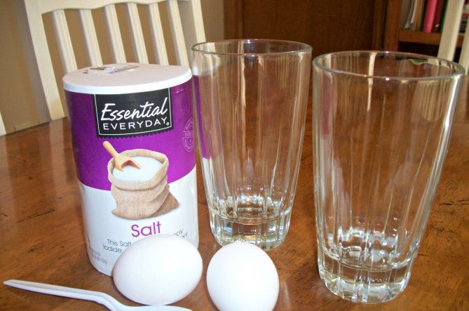Then add 10 teaspoons of salt to one of the glasses. (Don’t put any salt in the other glass of water.)