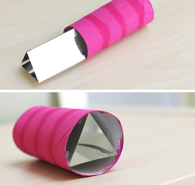 If you have trouble getting your triangular prism to fit snuggly into your cardboard tube, it will work on its own. Simply tape the straw directly on top of the prism rather than using a tube.