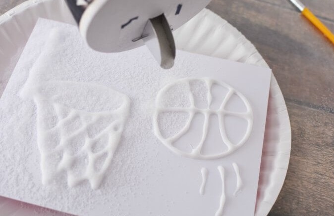 2. Once you are finished with your glue drawing, liberally sprinkle salt onto the glue.