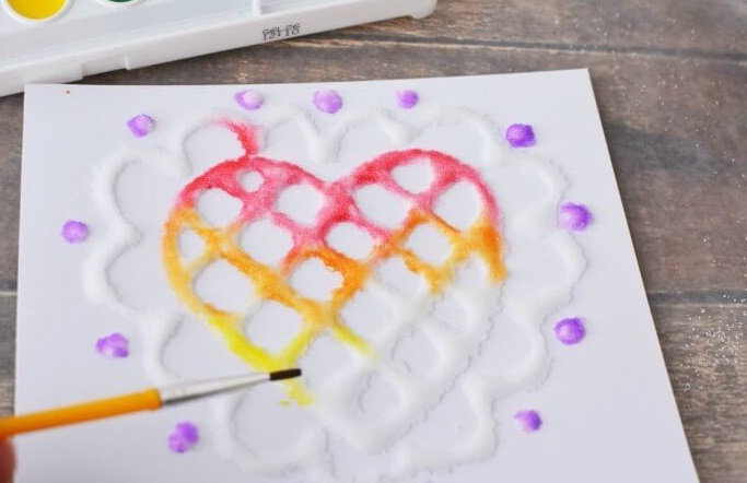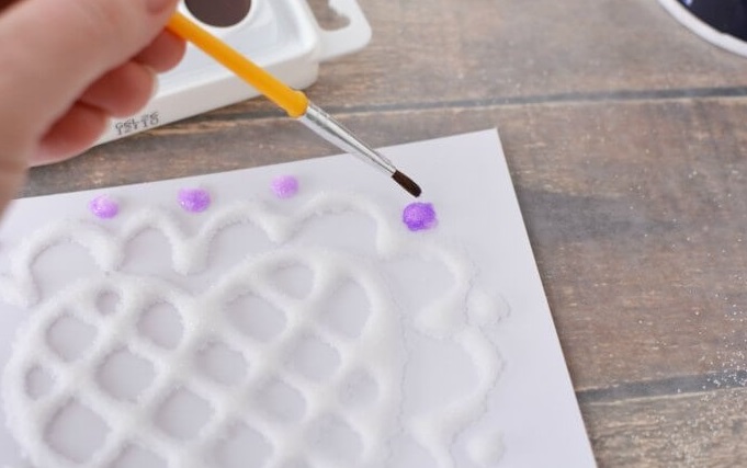 5. Use watercolour paints to gently paint onto the salt.