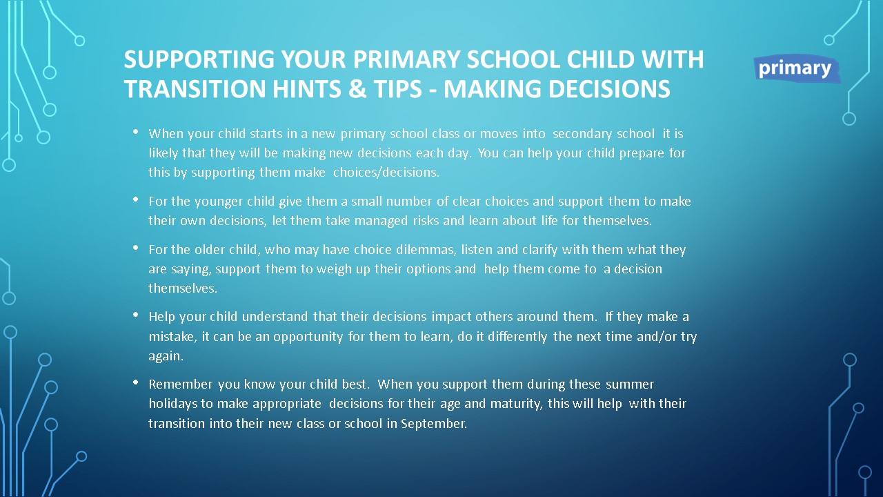 Supporting your primary school child with transitions - Making decisions